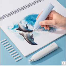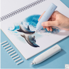 得力/deli 71073 橡皮 学生时尚电动橡皮擦 绘画美术橡皮含10枚替芯 皓月白 71073