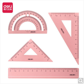 得力/deli 79516 各种尺 金属磨砂学生绘图考试套尺(直尺+三角尺*2+量角器)4件套 粉色79516