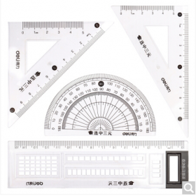 得力/deli 71950各种尺 连中三元绘图制图考试套尺 直尺三角尺量角器4件套