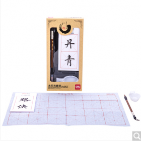 得力/deli 68883 书法绘画用具 仿宣水写布/毛笔/成人练字帖 可重复书写楷书精品文房四宝套装 练字布空白 初学者书法入门68883