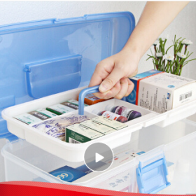 茶花/CHAHUA 095塑料制品收纳盒整理箱子储物箱塑料箱家用药箱药盒式多层9.5L 蓝色