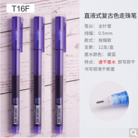 白雪/SNOWHITE T16F书写用笔类用具 速干直液式走珠笔复古黛蓝色中性笔0.5mm针管型学生用笔简约时尚绘图用笔0.5mm 12支/盒