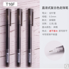 白雪/SNOWHITE T16F书写用笔类用具 速干直液式走珠笔复古绅黑色中性笔0.5mm针管型学生用笔简约时尚绘图用笔0.5mm 12支/盒
