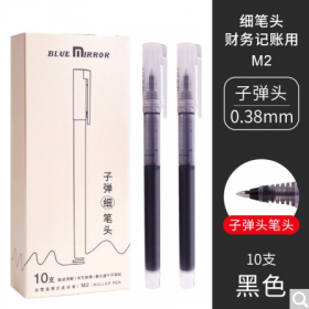 白雪/SNOWHITE M2书写用笔类用具 子弹头巨能写大容量中性笔学生用细笔头直液式走珠笔 0.38mm黑色墨水10支/盒