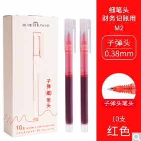 白雪/SNOWHITE M2书写用笔类用具 子弹头巨能写大容量中性笔学生用细笔头直液式走珠笔0.38mm红色墨水10支/盒