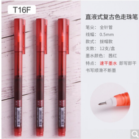 白雪/SNOWHITE T16F书写用笔类用具 速干直液式走珠笔复古茜红色中性笔0.5mm针管型学生用笔简约时尚绘图用笔0.5mm 12支/盒
