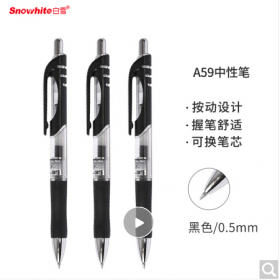 白雪/SNOWHITE A59书写用笔类用具 按动中性笔可换替芯签字笔子弹头水笔黑色0.5mm12支/盒