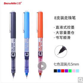 白雪/SNOWHITE PVN-159书写用笔类用具 直液式走珠笔速干7色中性笔签字笔水笔手账彩绘笔0.5mm彩色8支卡装