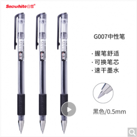 白雪/SNOWHITEG-007书写用笔类用具 速干中性笔可换笔芯子弹头学生考试笔商务办公签字笔水笔黑色0.5mm12支/盒