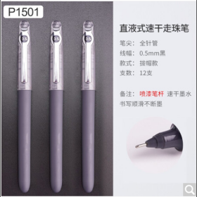 白雪/SNOWHITE P1501书写用笔类用具 黑色顺滑针管型水笔0.5mm办公用签字笔学生考试用走珠笔高颜值黑笔杆12支/盒