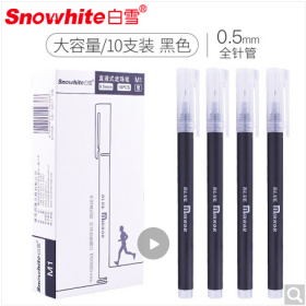 白雪/SNOWHITE M1书写用笔类用具 全针管巨能写大容量中性笔直液式走珠笔0.5mm纯白杆黑色墨水10支/盒
