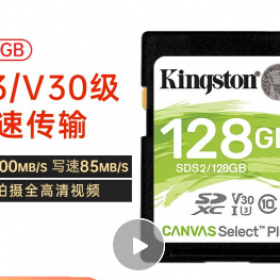 金士顿/Kingston 100M U盘/存储卡 128Gsd大卡佳能相机存储卡 微单反数码相机摄像高速内存卡U1 C10 128G(读速100M/s)