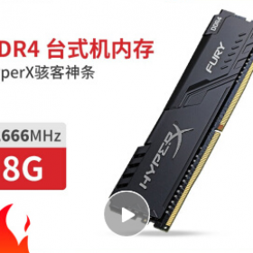 金士顿/Kingston 2666U盘/存储卡 骇客神条Fury系列 DDR4 2666兼容2133台式机内存条马甲条 台式机内存条8G