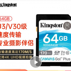 金士顿/Kingston U3 V30 U盘/存储卡 高速sd卡 佳能尼康微单反数码相机摄像内存大卡 U3 V30 170M/S SDG3/64G