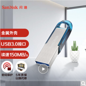 闪迪/SanDisk 128GBU盘/存储卡 USB3.0 U盘 CZ73酷铄 蓝色 读速150MB/s 金属外壳 内含安全加密软件