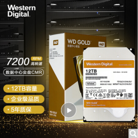 西部数据/WD SATA6Gb移动硬盘金盘 12TB SATA6Gb/s 7200转256M 企业硬盘(WD121VRYZ)