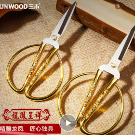 三木/SUNWOOD 91123剪刀 153mm不锈钢龙凤呈祥居家剪彩金剪刀 91123