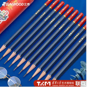 三木/SUNWOOD QY18 书写用笔类用具 清华大学艺术博物馆联名强运系列 2B考试答题卡铅笔 12支装 QY18