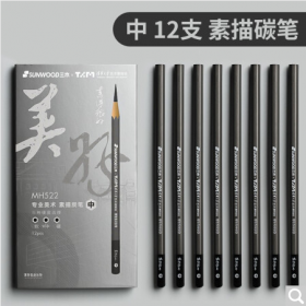 三木/SUNWOOD MH523 书写用笔类用具 清华大学艺术博物馆联名美好系列 软性炭笔 素描铅笔美术专用绘画碳笔 12支/盒 MH523