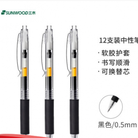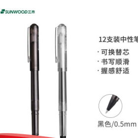三木/SUNWOOD G11 书写用笔类用具 0.5mm黑色中性笔/磨砂透明笔杆签字笔/黑透白透笔杆混装 12支/盒 G11