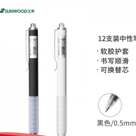 三木/SUNWOOD G20 书写用笔类用具 0.5mm黑色按动中性笔/磨砂笔杆签字笔/黑白笔杆混装 12支/盒 G20