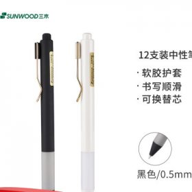三木/SUNWOOD G22书写用笔类用具 0.5mm黑色按动中性笔/黑白笔杆混装 12支/盒 G22