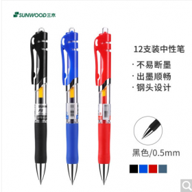 三木/SUNWOOD G15 书写用笔类用具 0.5mm黑色按动中性笔签字笔 12支/盒 G15