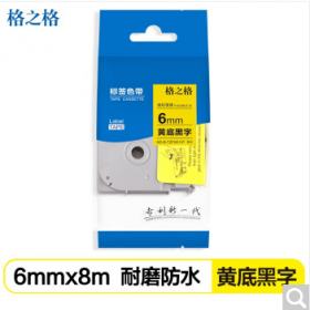 格之格/G&G Tze-611 色带、碳带标签色带适用兄弟标签机色带 6mm 黄底黑字标签打印机色带