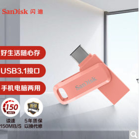 闪迪/SanDisk 1122 U盘/存储卡Type-C USB3.1手机U盘DDC3 粉色 64GB 至尊高速酷柔 传输速度150MB/s 双接口