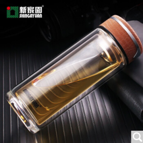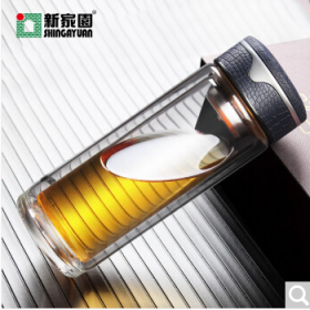 清水/SHIMIZU 044杯双层玻璃杯商务男士水杯耐热办公室车载便携加厚杯子泡茶杯礼盒装 棕色 400mL