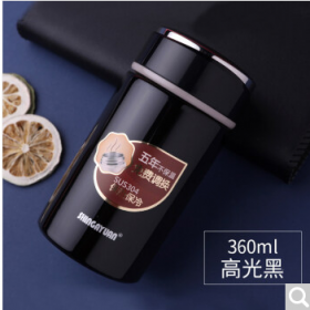 清水/SHIMIZU 304杯壶女士保温杯304真空不锈钢学生便携迷你水杯小巧可爱创意 高光黑360m
