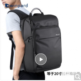 威豹/Winpard 99062收纳包 双肩包男士休闲商务防泼水15.6英寸笔记本电脑背包出差 中号15.6寸黑色(前袋竖款)