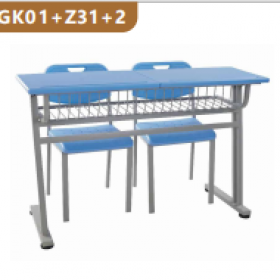 凯威 GK01+Z31+2教学、实验用桌 儿童桌椅套装学生课桌椅可升降中小学生课桌椅学校书桌写字桌写字台培训桌辅导班学习桌椅套装学习桌加厚 双柱桌+靠背椅
