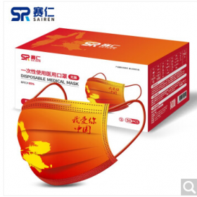• 赛仁/SAIREN SR175防护口罩 一次性使用口罩50片/盒 无菌每片独立装 17.5*9.5cm 我爱你中国口罩