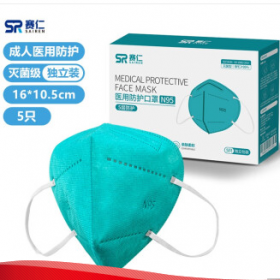 • 赛仁/SAIREN SRN95L防护口罩 N95防护口罩 5层防护 无菌型独立装 5片装/盒 (绿色款)