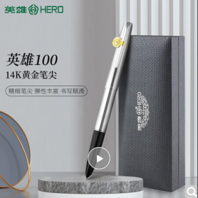 • 英雄/HERO Y1400书写用笔类用具钢笔 全钢100银色(14K)金尖签字笔 墨水笔办公礼品 银夹