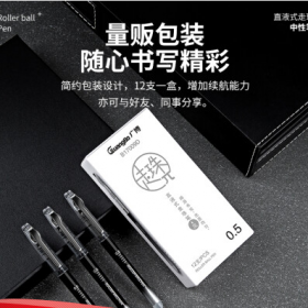 广博/GuangBo SX9586D 书写用笔类用具0.5mm黑色直液式走珠笔 签字中性笔 学生考试笔 12支/盒