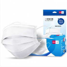 得力/deli 19380防护口罩 成人平面口罩(商超装)(白色)(1只)