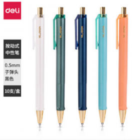 得力/deli NS649书写用笔类用具纽赛臻顺滑按动中性笔0.5mm子弹头(黑)(支)纽赛
