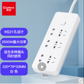 齐心/COMIX LC-W62插座 新国标插座 6位21孔总控全长2米