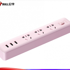 公牛/BULLGNV-UU2153P 插座茱萸粉新国标小白USB插座 3usb接口+3孔全长1.8米GNV-UU2153P