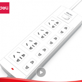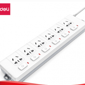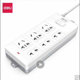 得力/deli 3980-03 插座新国标分控插座/ 儿童保护门 6位独立开关 全长3米 3980-03