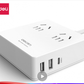 得力/deli 33650 插座PD/QC快充插座(45W) 2USB+Type-C口 1.5米白 33650