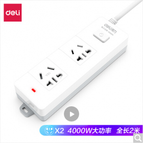 得力/deli 18265 插座16A大功率插座 4kw空调插座 2位2米 总控开关 18265