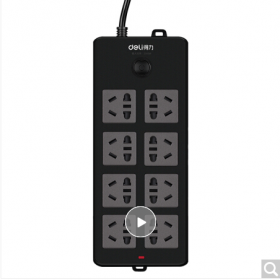 得力/deli 18320(03) 插座新国标安全插座 8位3米 总控开关 灰色 18320(03)