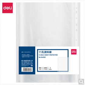 得力/deli 64050 文件袋100个装11孔透明文件袋 A4插页保护袋 活页文件资料袋 64050
