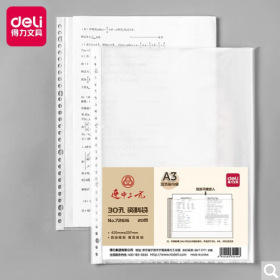 得力/deli 72616 文件袋A3/30孔试卷资料册活页内袋20页 试卷收纳袋 学科文件袋 加厚加宽大容量收纳 72616白