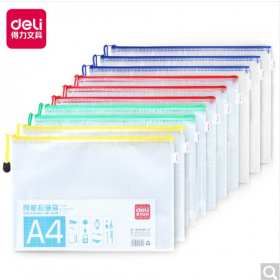得力/deli 27040 文件袋10只4色混装拉链袋 A4软质文件袋资料袋27040
