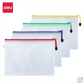 得力/deli 27041 文件袋4只A4防水拉链袋 透明网格文件资料收纳袋27041