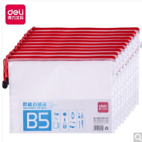 得力/deli 5655 文件袋10只B5网格拉链文件袋 红5655
